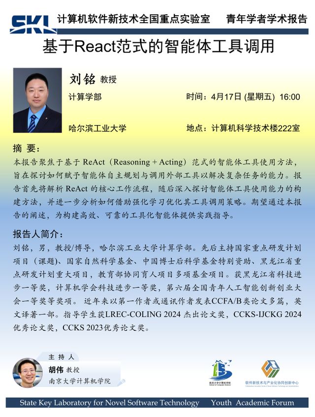 2026年4月17日“软件新技术讲坛”学术报告 - 刘铭 教授