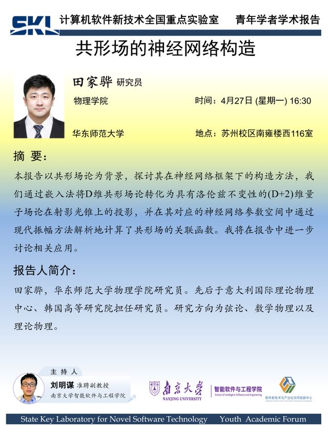 2026年4月27日“软件新技术讲坛”学术报告 - 田家骅 研究员