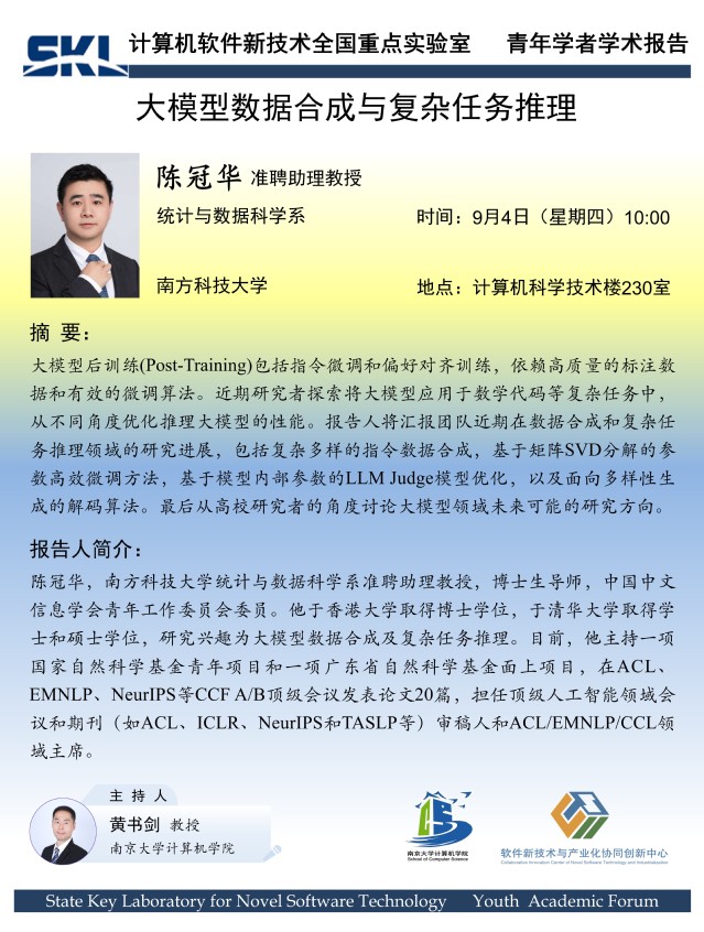 2025年9月4日 “软件新技术讲坛” 学术报告 -陈冠华 准聘助理教授