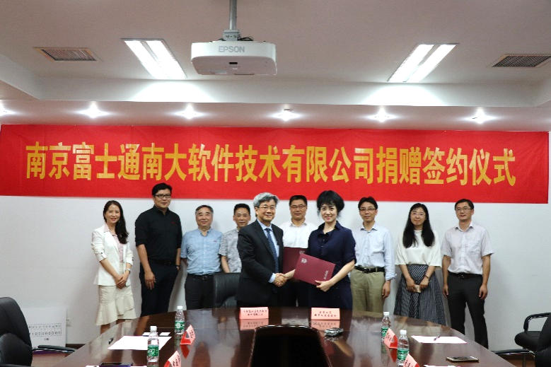 2019年6月11日,南京富士通南大软件技术有限公司捐赠签约仪式在公司仙林校区举行。南京富士通南大软件技术有限公司总经理长仓浩士先生一行,公司党委副书记薛海林,发展委员会、资产经营有限公司、计算机系负责同志参加了仪式。仪式由发展委国内部主任王俊主持。