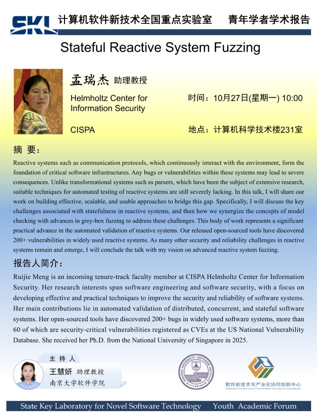 2025年10月27日“软件新技术讲坛” 学术报告 - 孟瑞杰 助理教授