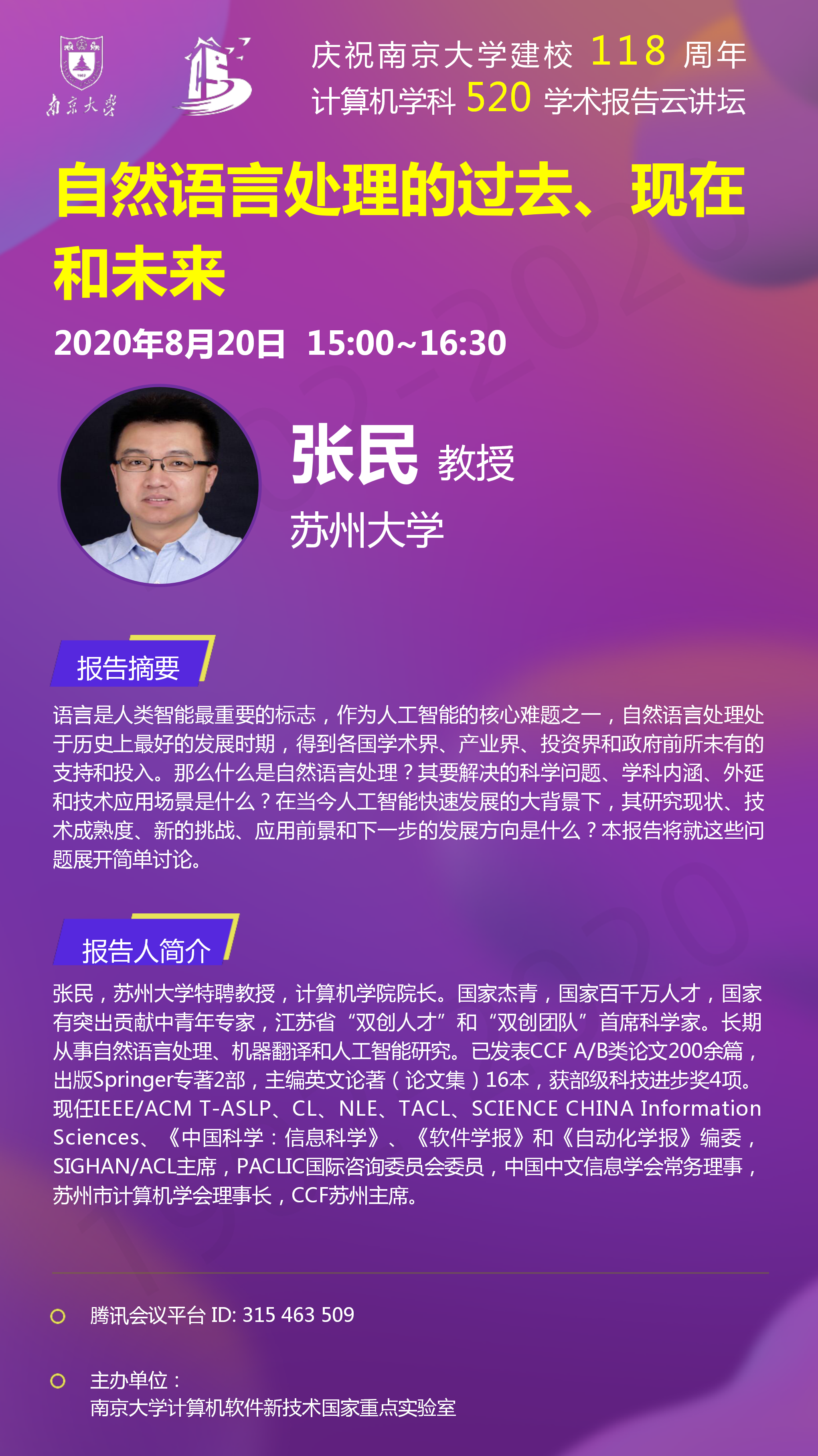 庆祝BETWAY必威建校118周年 计算机学科520学术报告云讲坛- 张民 教授