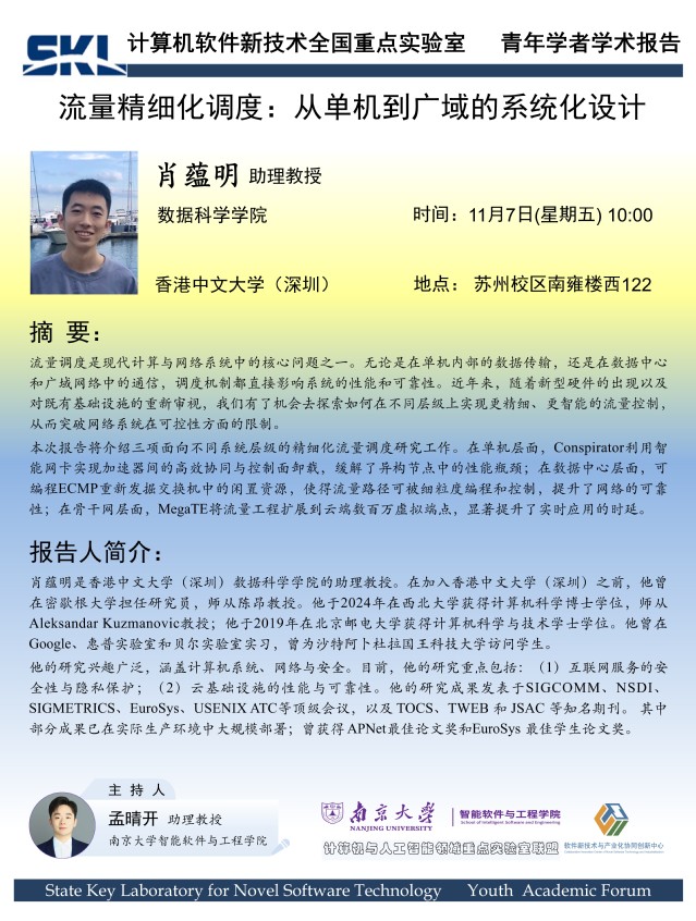 2025年11月7日“软件新技术讲坛”学术报告 - 肖蕴明 助理教授