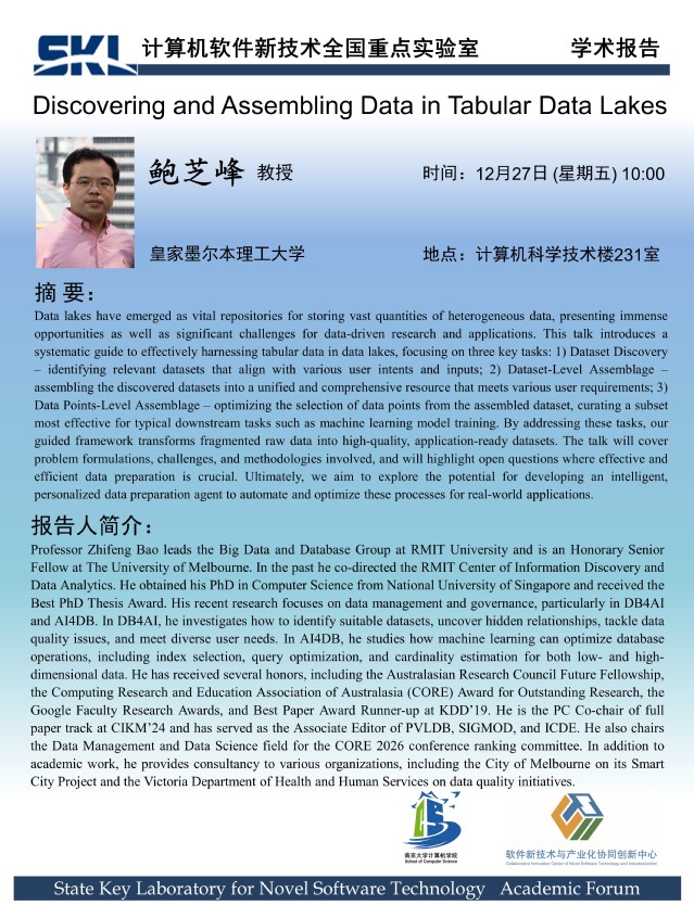 2024年12月27日 “软件新技术讲坛” 学术报告 - 鲍芝峰 教授