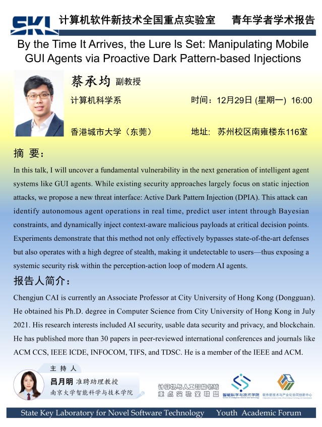 2025年12月29日“软件新技术讲坛”学术报告 - 蔡承均 副教授