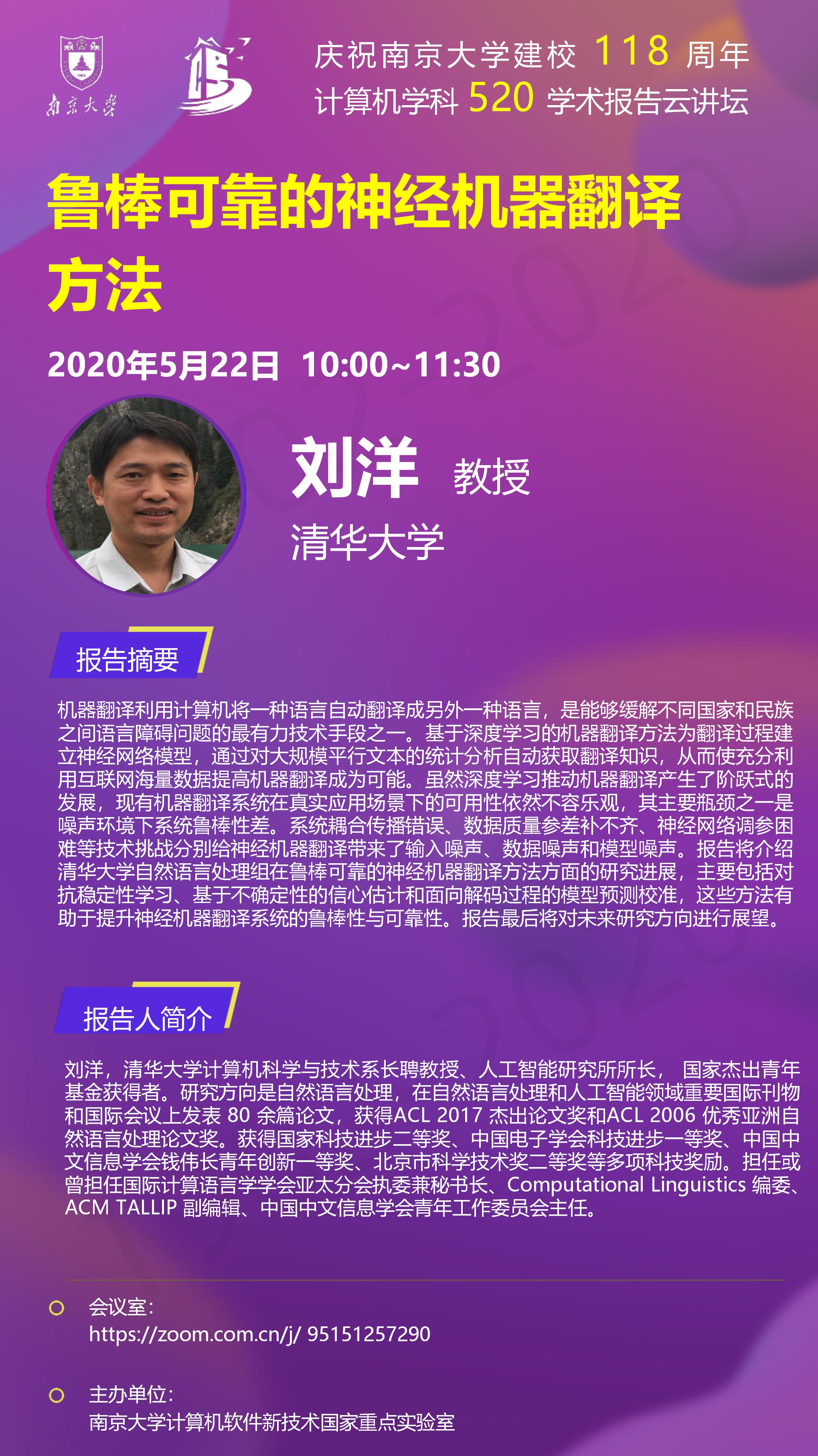 庆祝BETWAY必威建校118周年 计算机学科520学术报告云讲坛- 刘洋 教授