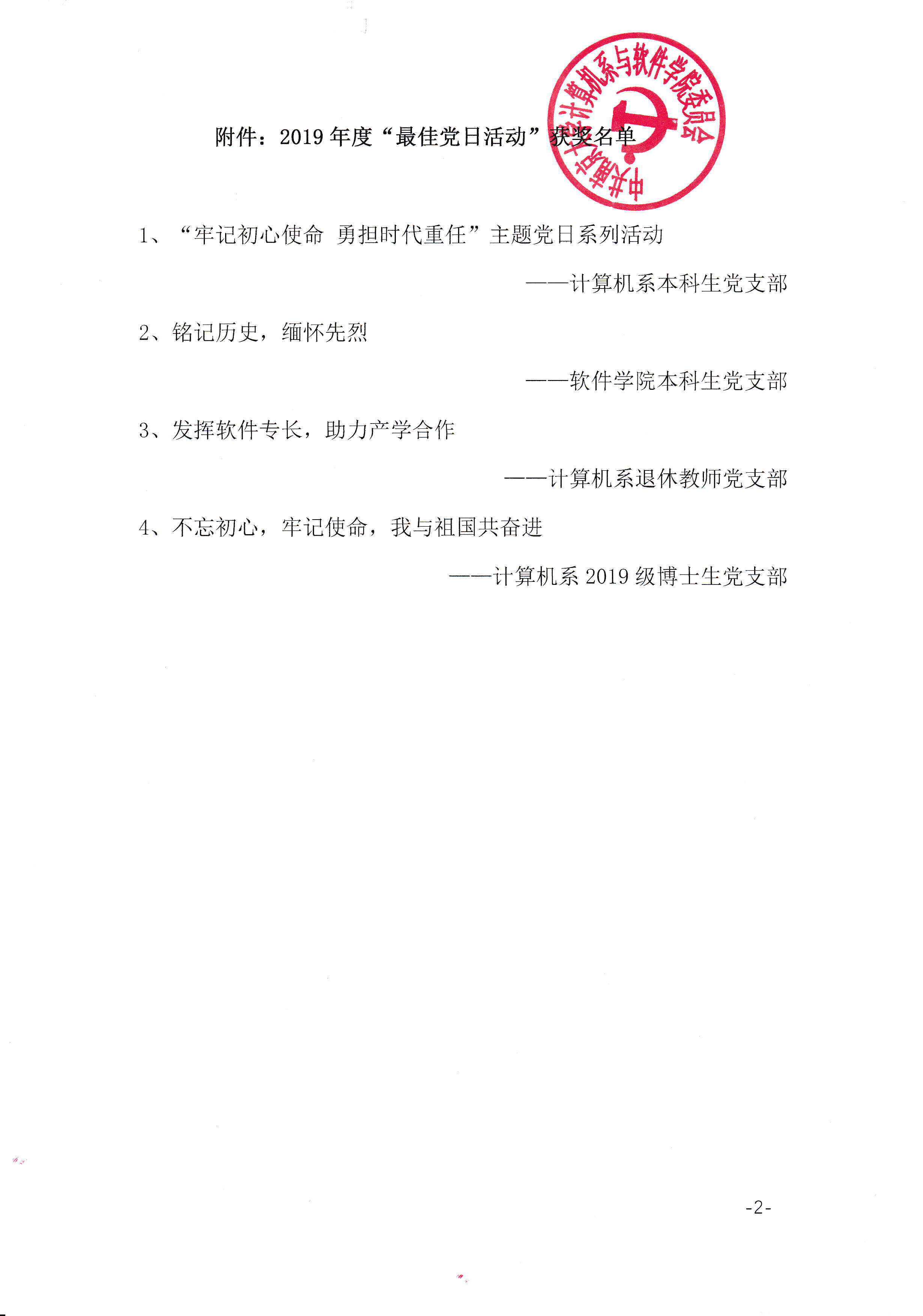 关于表彰2019年度‘最佳党日’的决定