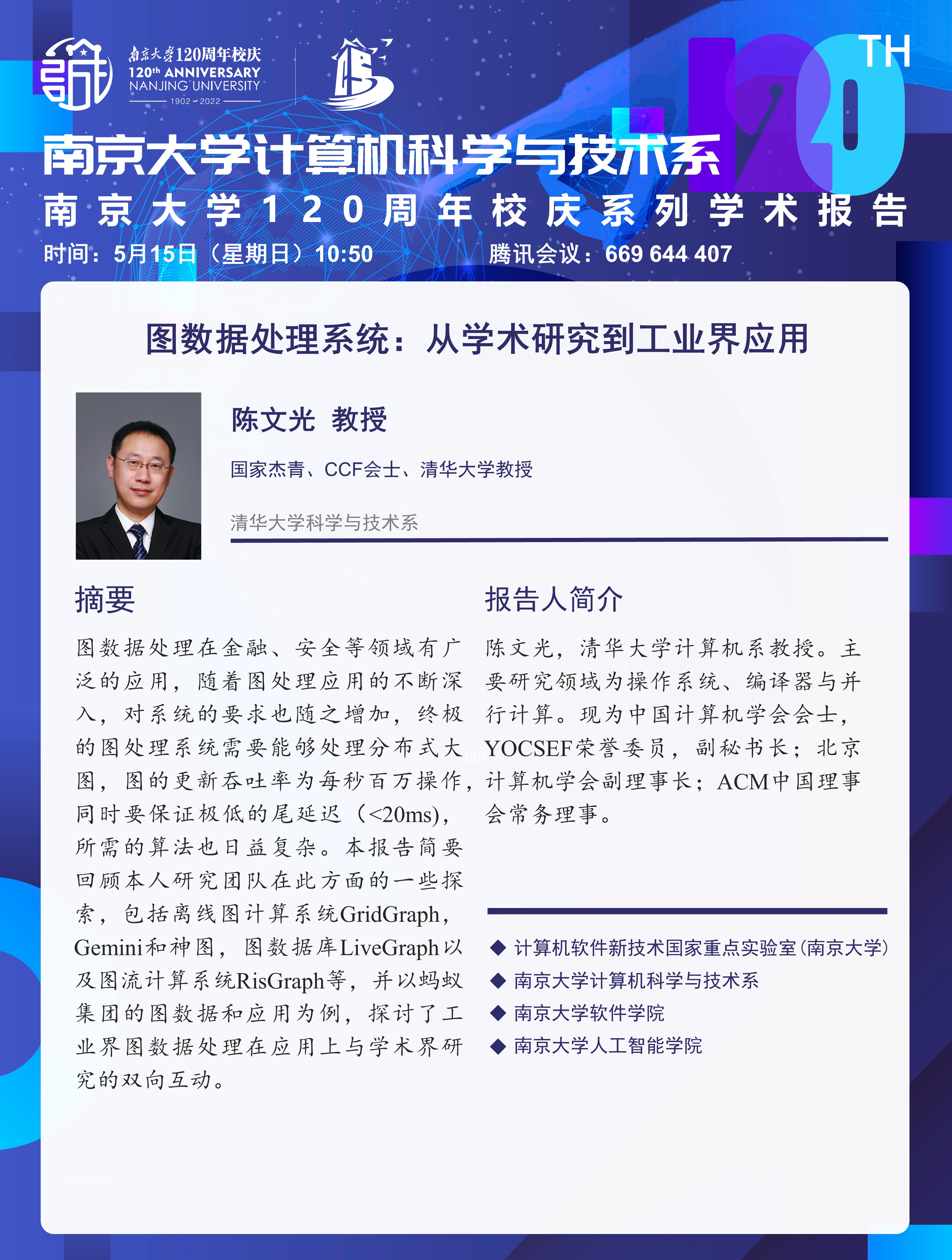 BETWAY必威120周年校庆系列学术报告—图数据处理系统:从学术研究到工业界应用