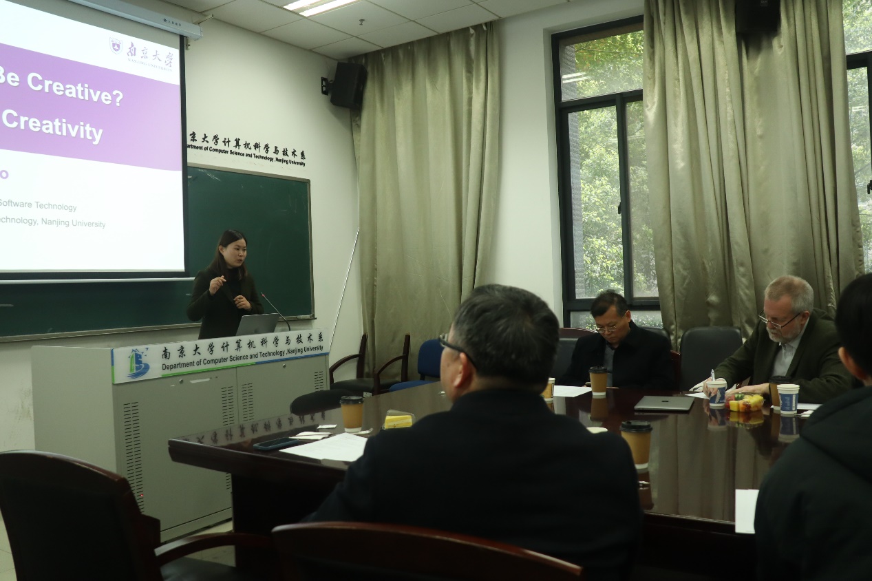 随后,霍静博士代表计算机系团队介绍了他们在游戏与艺术相关领域的研究成果,包括艺术风格图像生成技术、足球游戏人工智能、掼蛋人工智能等。