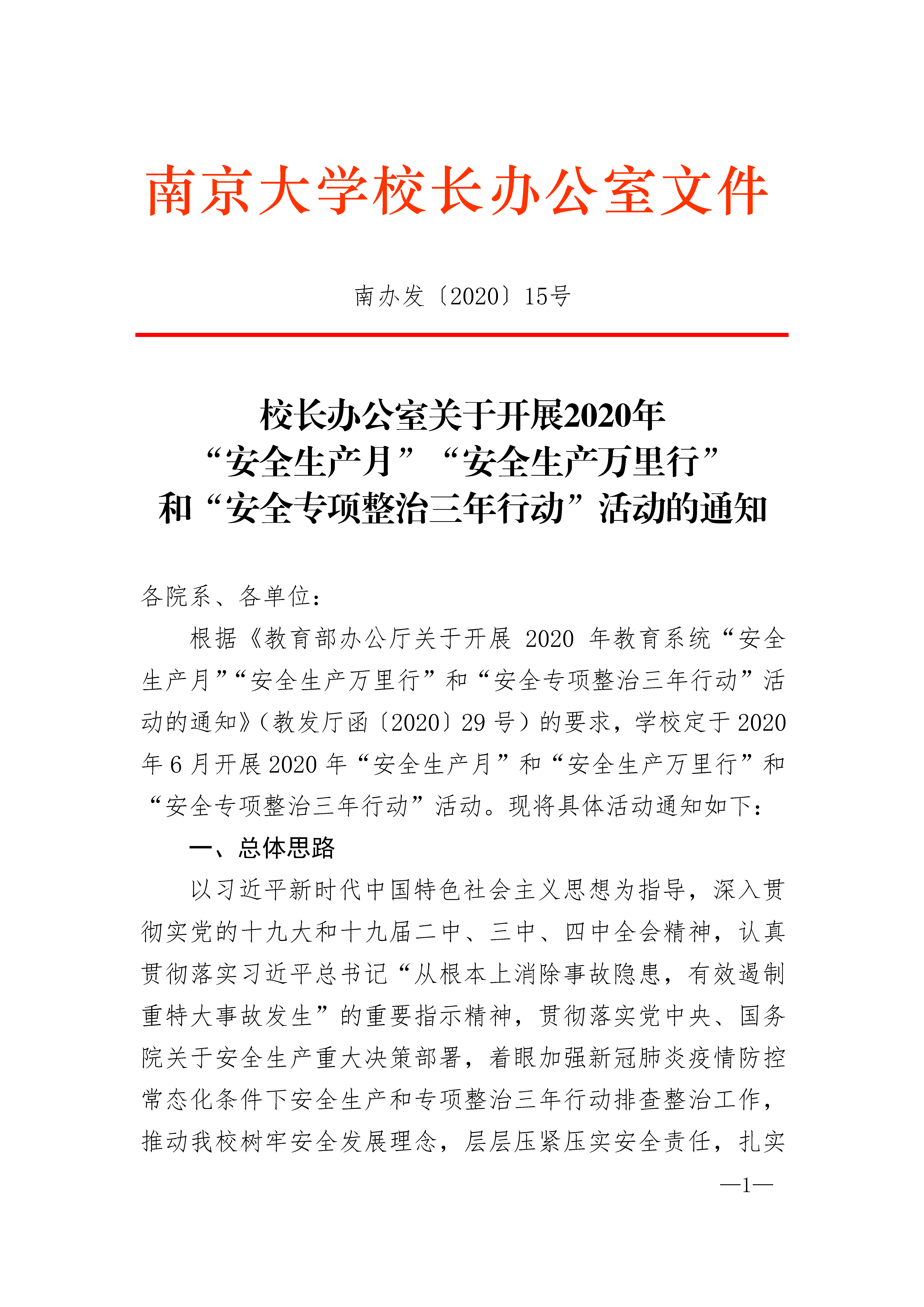 董事长办公室关于开展2020年“安全生产月”“安全生产万里行”和“安全专项整治三年行动”活动的通知