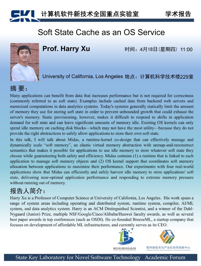 2024年4月18日 “软件新技术讲坛” 学术报告 - Prof. Harry Xu