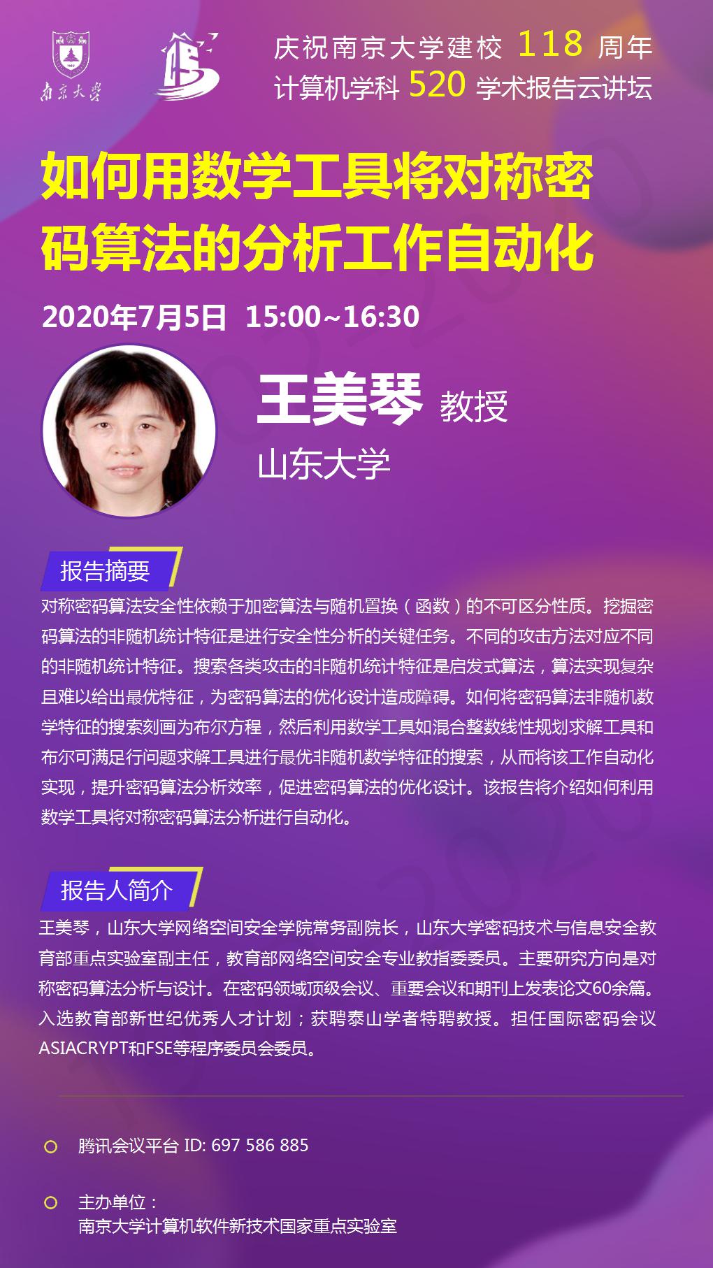 庆祝BETWAY必威建校118周年 计算机学科520学术报告云讲坛- 王美琴 教授