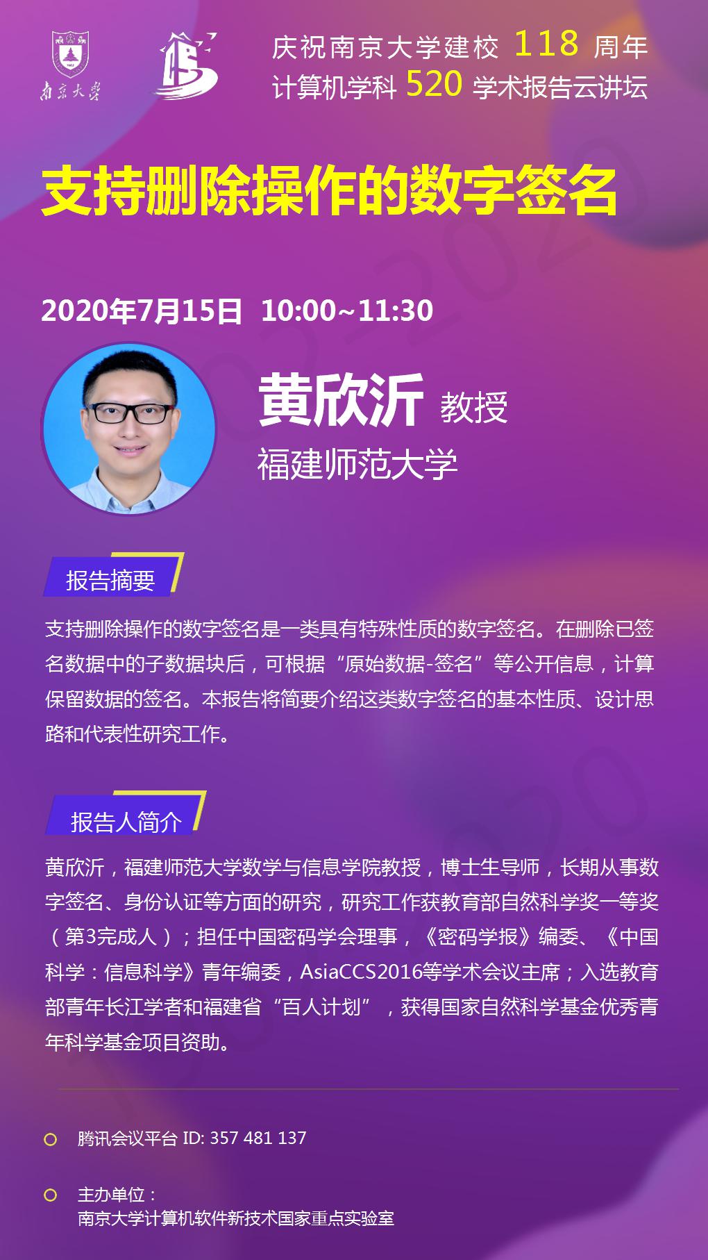 庆祝BETWAY必威建校118周年 计算机学科520学术报告云讲坛- 黄欣沂 教授