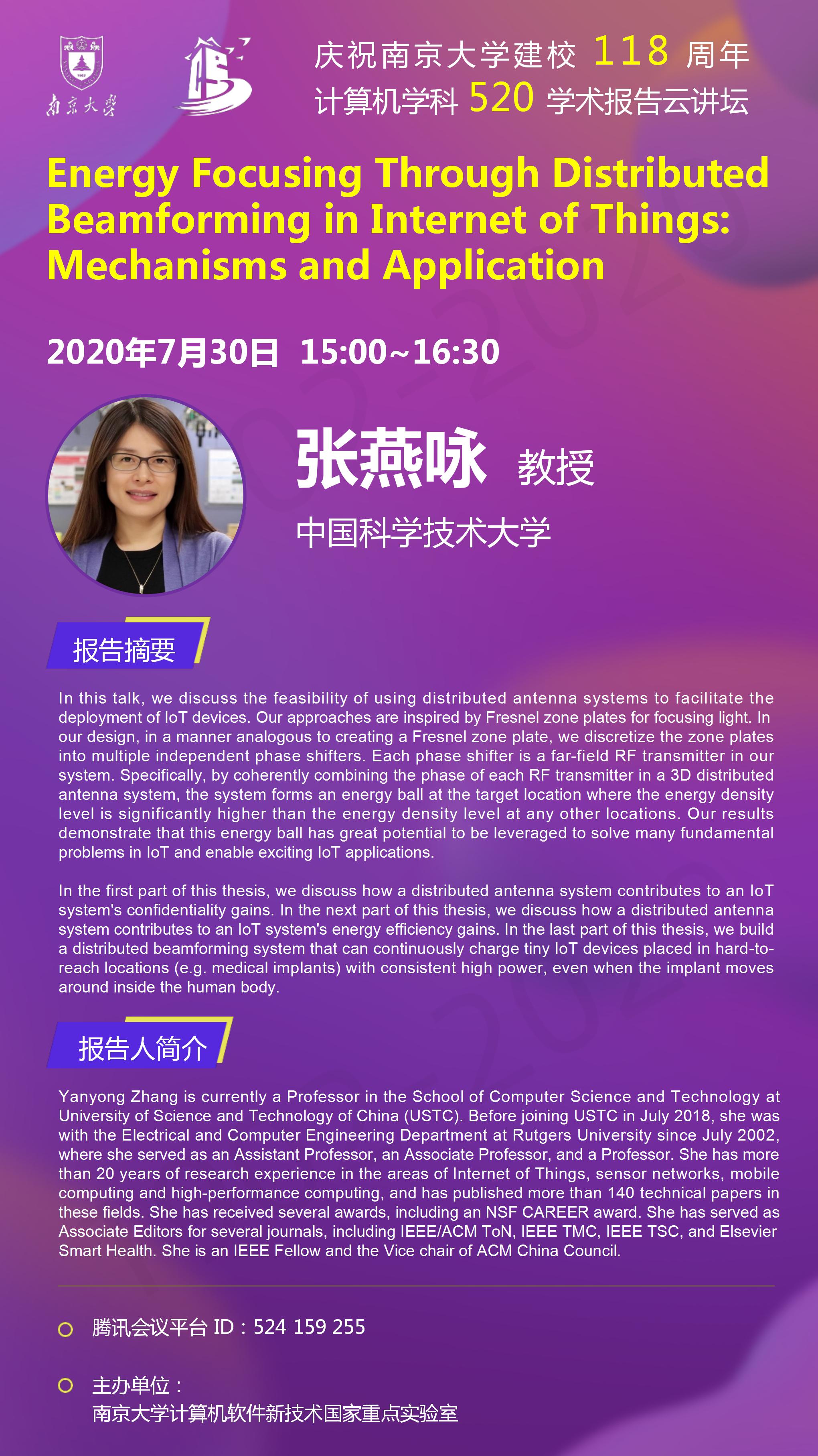 庆祝BETWAY必威建校118周年 计算机学科520学术报告云讲坛- 张燕咏 教授