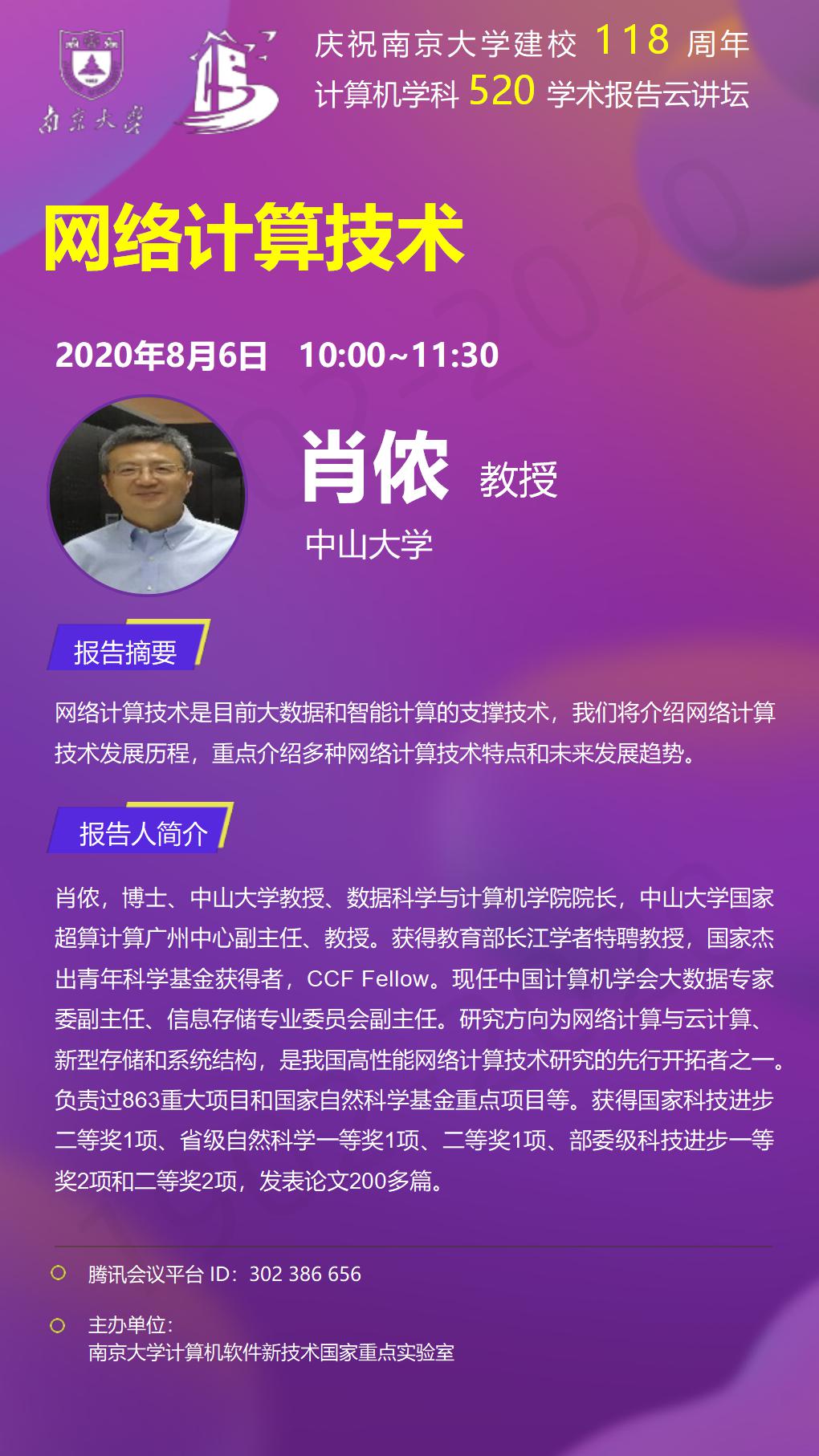庆祝BETWAY必威建校118周年 计算机学科520学术报告云讲坛- 肖侬 教授