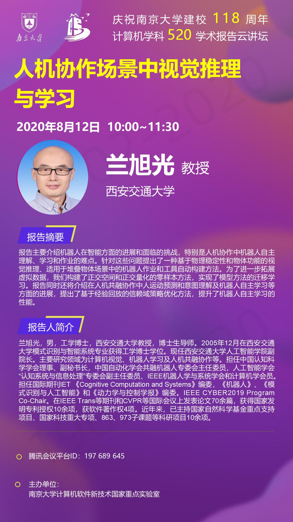 庆祝BETWAY必威建校118周年 计算机学科520学术报告云讲坛- 兰旭光 教授