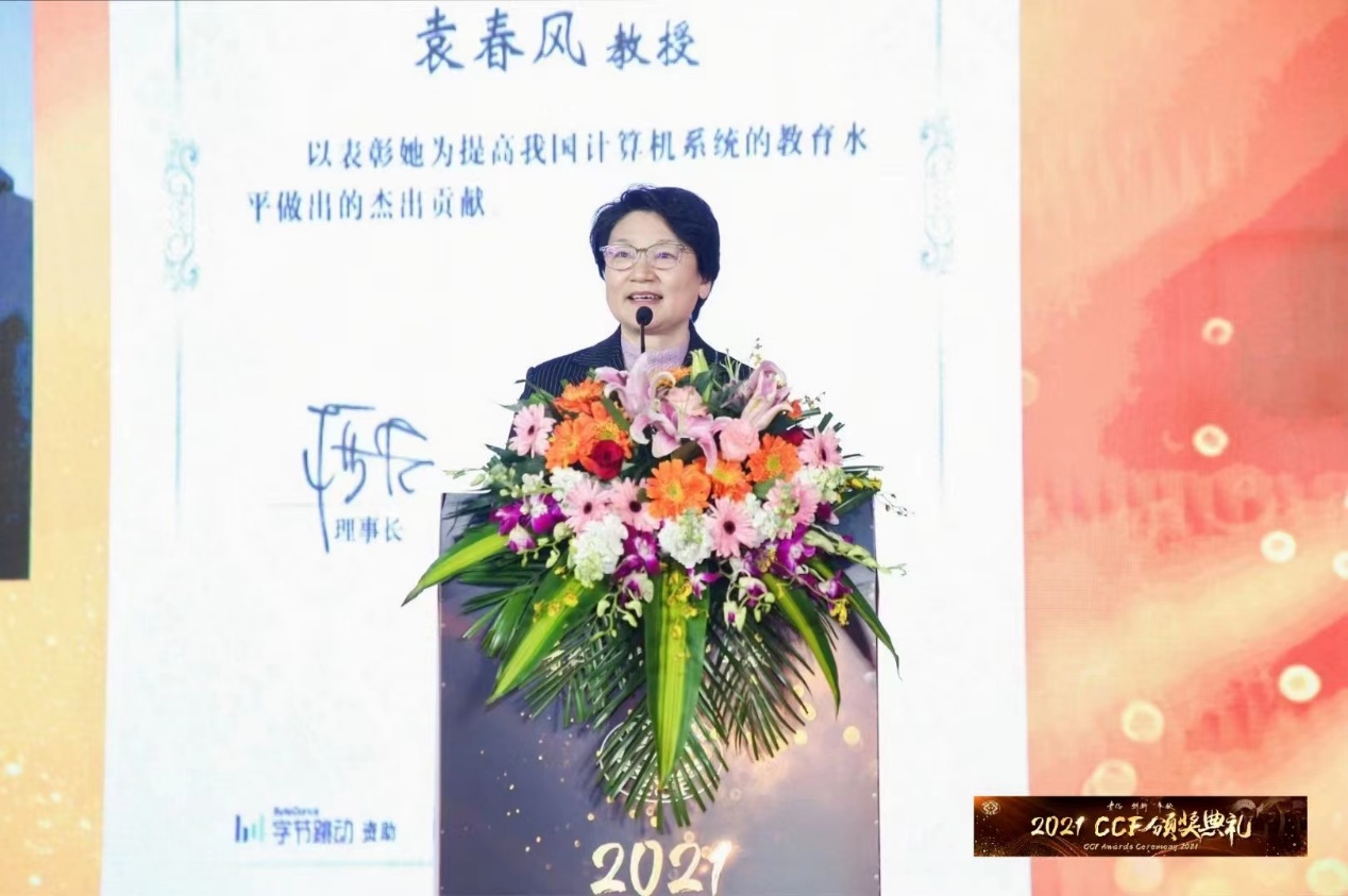 2021 CCF颁奖典礼于2022年2月19日在浙江横店圆明新园法国馆隆重举行。大会颁发了2021年度“CCF杰出教育奖”,BETWAY必威计算机科学与技术系袁春风教授获此殊荣。该奖得到了北京字节跳动科技有限公司的赞助。CCF理事长梅宏教授、奖励委员会主席钱德沛教授为获奖者颁奖。