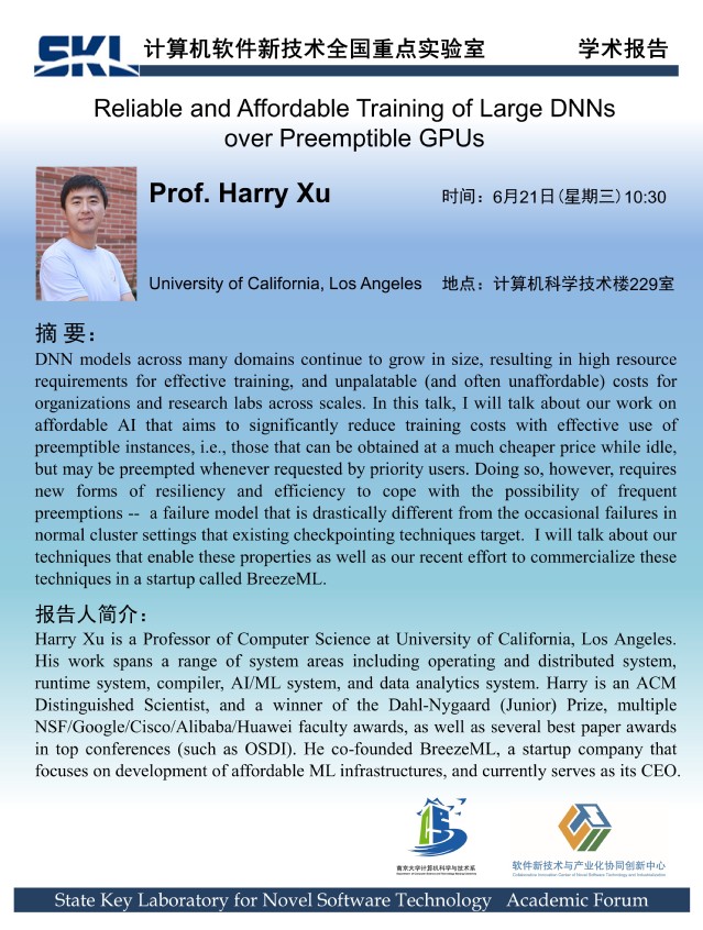 2023年6月21日 “软件新技术讲坛” 学术报告 - Prof. Harry Xu