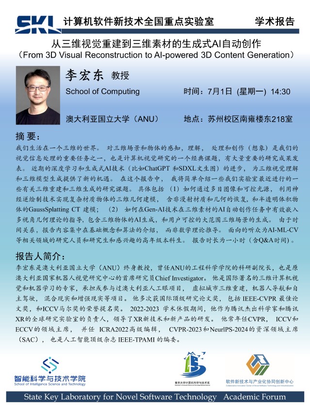 2024年7月1日 “软件新技术讲坛” 学术报告 - 李宏东 教授