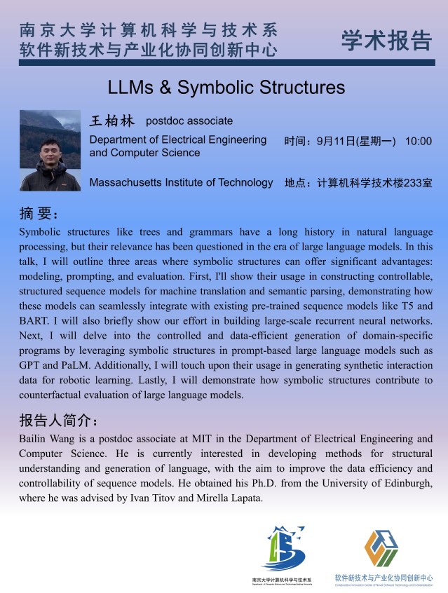 2023年9月11日 “软件新技术讲坛” 学术报告 - 王柏林 postdoc associate