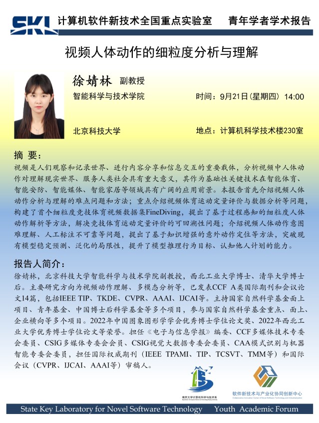 2023年9月21日 “软件新技术讲坛” 学术报告 - 徐婧林 副教授