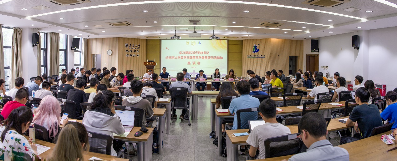 师生交流环节,王可老师分享了自己参加多场学习后的收获,同时用多位归国学者的“金句”鼓励大家。李其芳老师号召同学们赓续“宽德养士,至乐成学,吾道在国,与世恒新”的南大精神,为推动国家科技的自立自强贡献力量。员工代表胡圣佑同学表示收到回信后非常激动,参加今天座谈收获颇丰,作为新时代青年将时刻不忘初心、牢记使命、抓住机遇、踔厉奋发,做出自己应有的贡献。