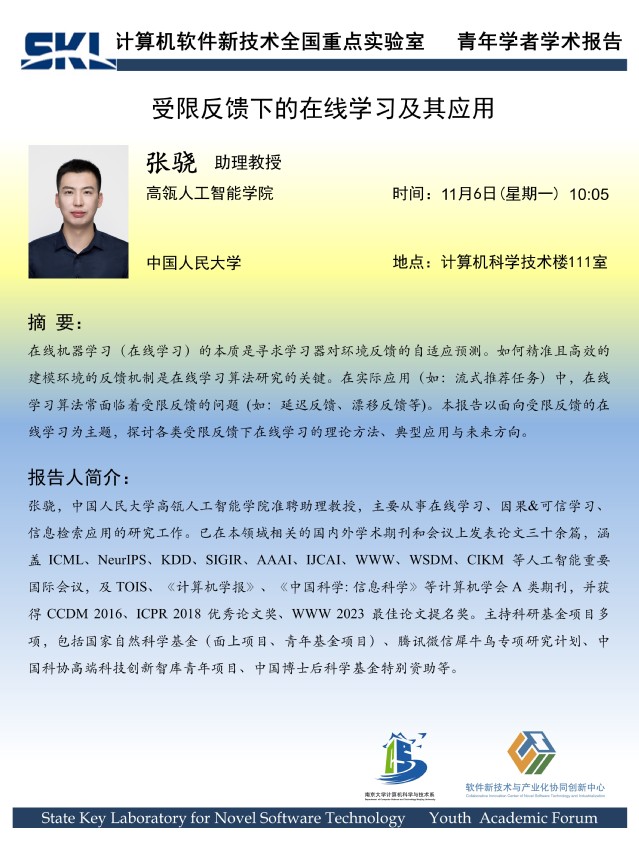 2023年11月6日 “软件新技术讲坛” 学术报告 - 张骁 助理教授