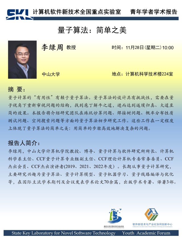 2023年11月28日 “软件新技术讲坛” 学术报告 - 李绿周 教授