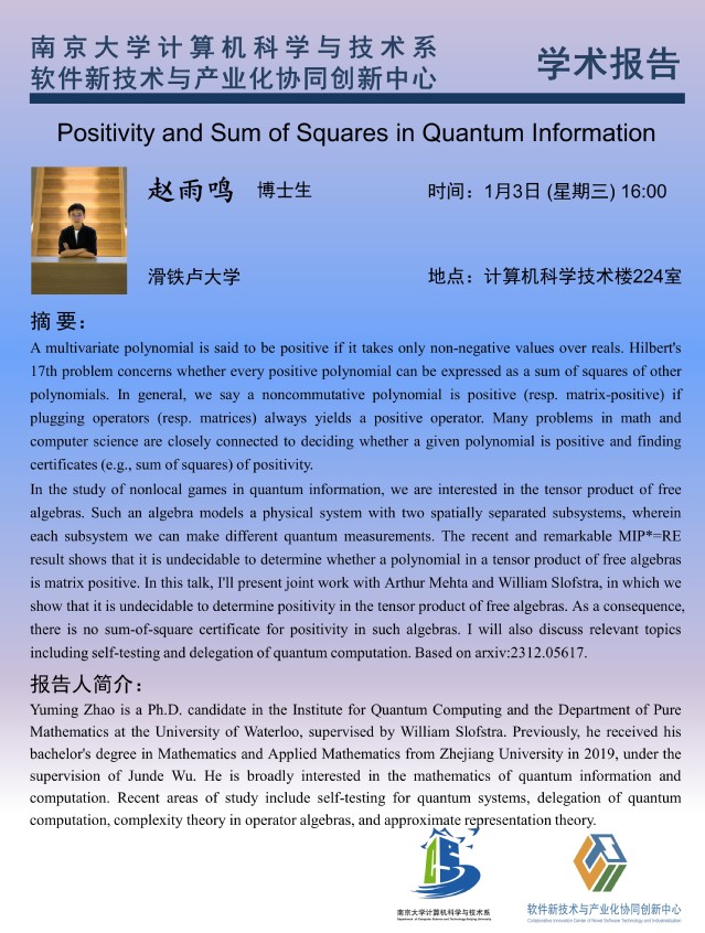 2024年1月3日 学术报告 - 赵雨鸣 博士生