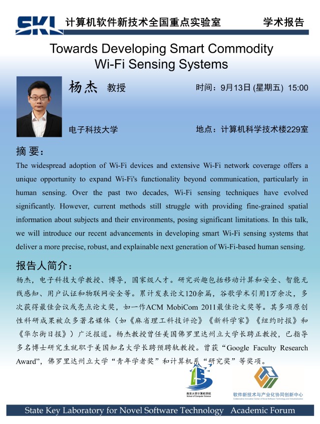 2024年9月13日 “软件新技术讲坛” 学术报告 - 杨杰 教授