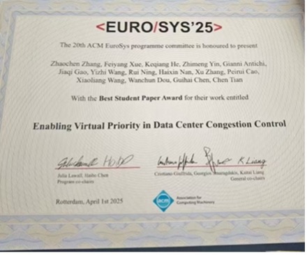 ** Cong!EuroSys 2025 paper won the Best Student Paper Award, Cong to Zhaochen, Feiyang